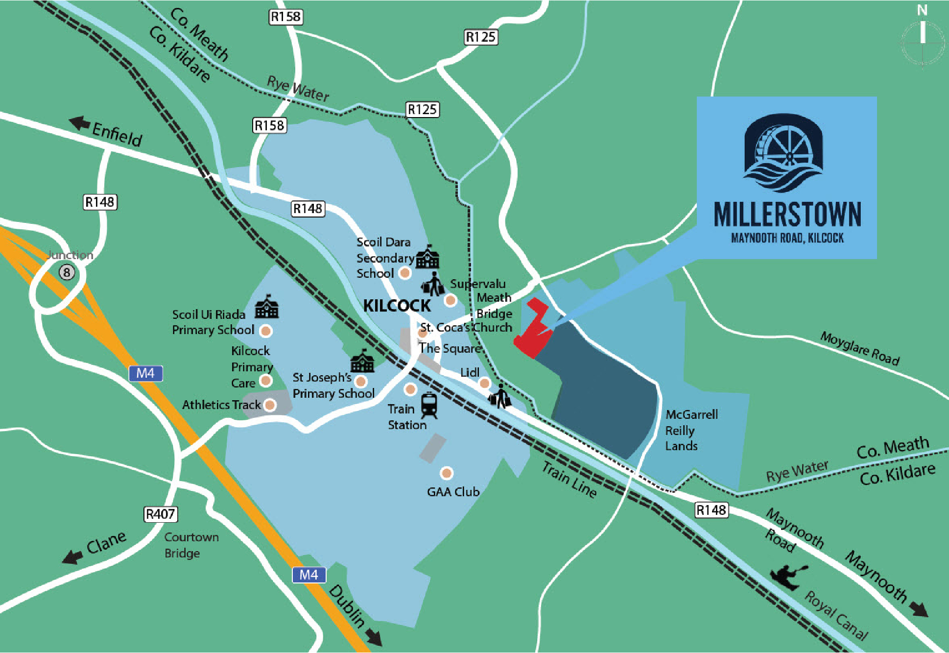 There are excellent transport links connecting Kilcock to Dublin City Centre with Irish Rail providing a commuter service to the heart of the capital, the train station is a short walk from Millerstown. A regular bus service is also on hand to bring you into Dublin City Centre. Dublin Airport is an approximate 30 minute drive away and the M4 road network allows access to the M50 providing links to all major routes